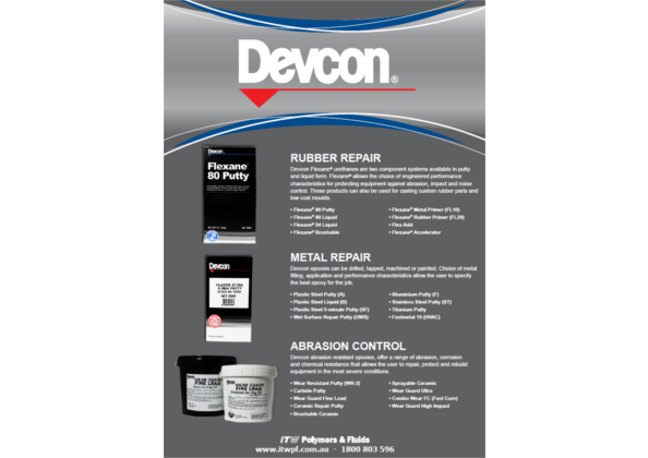 Since then, Devcon has developed many well-known OEM and MRO products such as: 5 Minute® Epoxy, 2 Ton®, Plastic Welder™, Flexane® Urethanes, Wear Guard™ and Floor Patch™ to name a few.